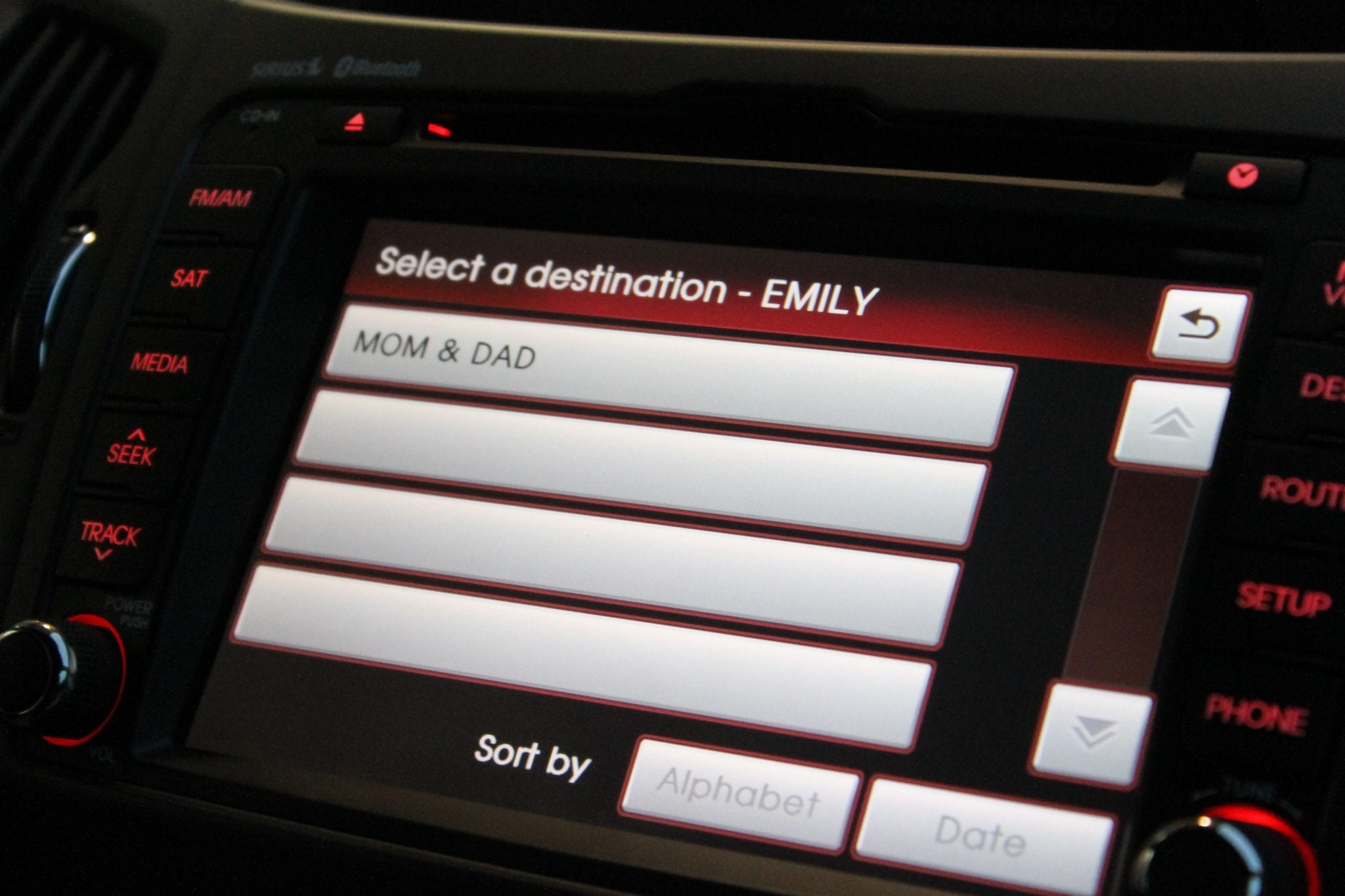 The Sportage we tested had a navigation system as well. I loved the system that Kia uses! We programmed in our destination address (Mom & Dad’s house) and it mapped out the trip, showed us how the traffic looked (upgraded nav feature) and how long it would take to get there. My favorite thing was that it could also tell you what TIME you would get there!! It was spot on accurate with the time, too.